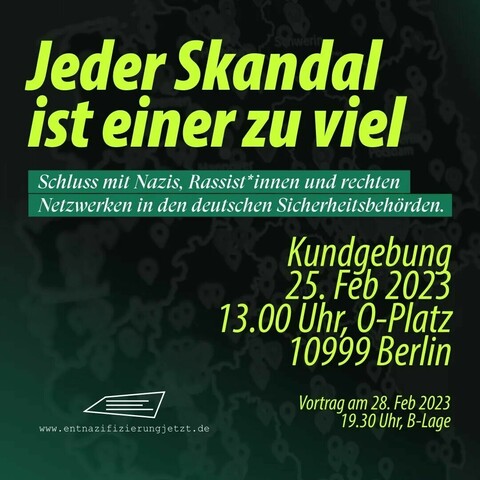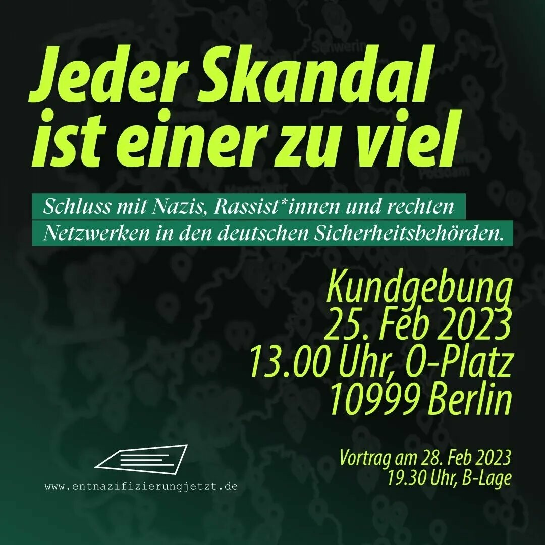 Seit fast drei Jahren hat die Kampagne #EntnazifizierungJetzt über 850 Skandale mit Nazis und Rassist*innen in den deutschen „Sicherheitsbehörden“ gesammelt. Die Ergebnisse zeigen: Das Problem ist deutlich größer als immer behauptet. Wir sitzen auf einem Pulverfass.