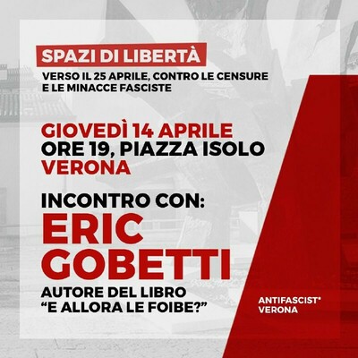 📢 Giovedì 14 Aprile #EricGobetti sarà insieme ai/lle cittadinə antifascistə veronesi per difendere la libertà di espressione contro il #revisionismostorico e la #censura dell'amministrazione locale di estrema destra.