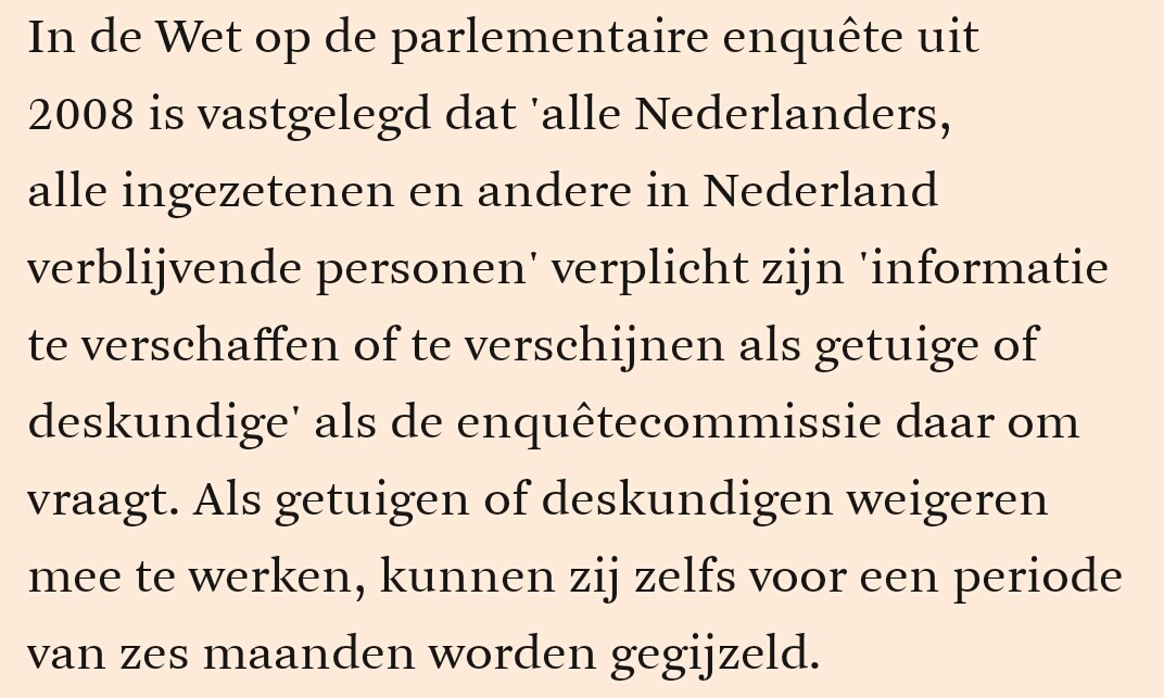 Als ik het goed lees kan de man dan niet naar Nederland komen, zolang de parlement enquête duurt