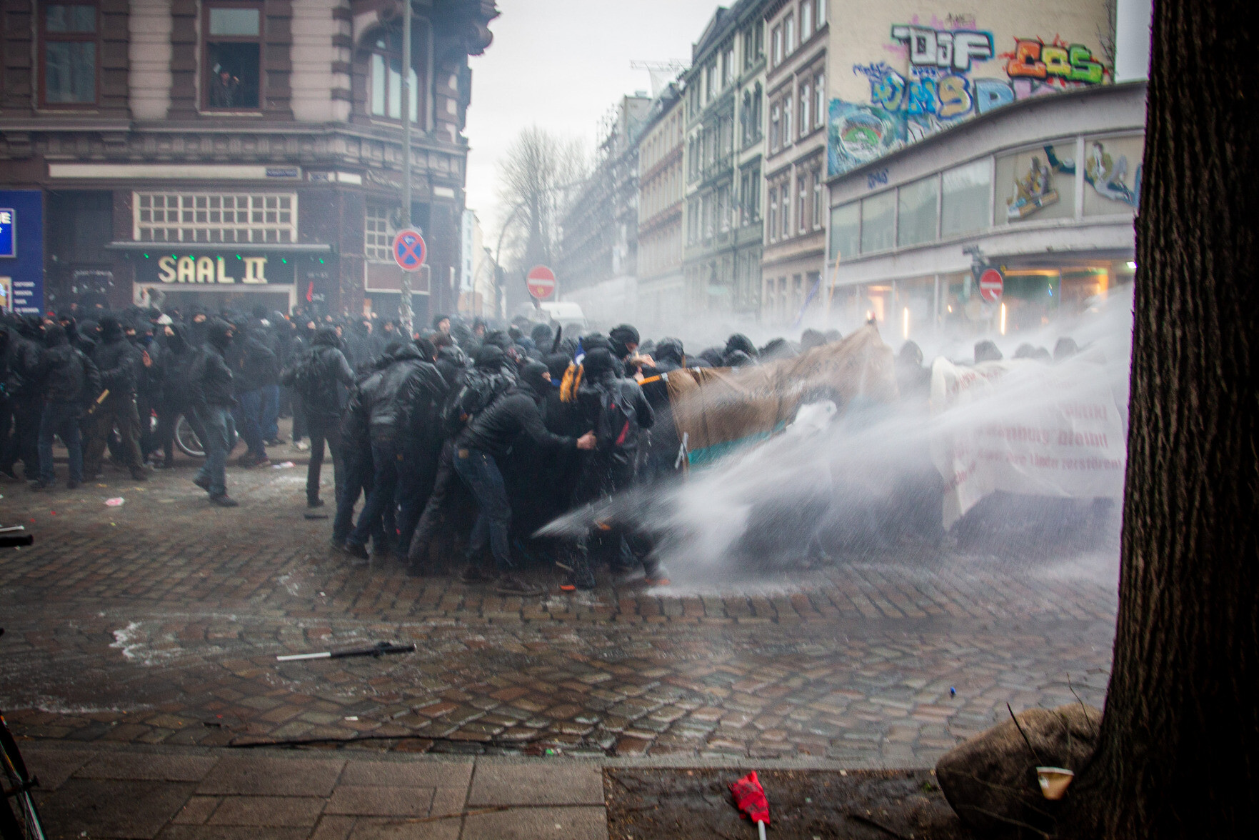 Heute vor 9 Jahren haben die Cops in #Hamburg eine Demo zum Erhalt der #Esso-Häuser und der @Rote_Flora auseinander gekloppt. Die Demonstration kam nur wenige Meter weit und wurde direkt angegriffen. Es wurden Wasserwerfer, bei Temperaturen knapp über dem Gefrierpunkt, eingesetzt. Daraufhin kam es den Rest des Tages zu heftigen Straßenschlachten. Kleingruppen griffen immer wieder einzelne Polizeieinheiten an oder setzten Barrikaden in Brand. #hh2112