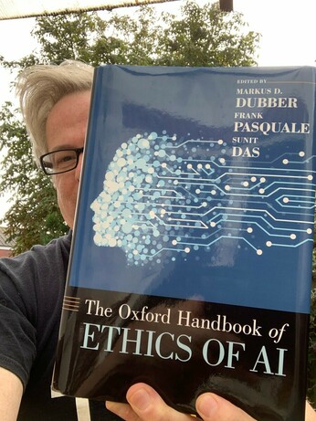 Late to the party, but just received: Oxford Handbook of #EthicsofAI - 44 new essays by top people on wide range of topics. Congrats @MarkusDubber @FrankPasquale & Sunit Das on a beautiful book! Summary of my bit: "Don't aim to make ethical robots; aim to make robots ethically".