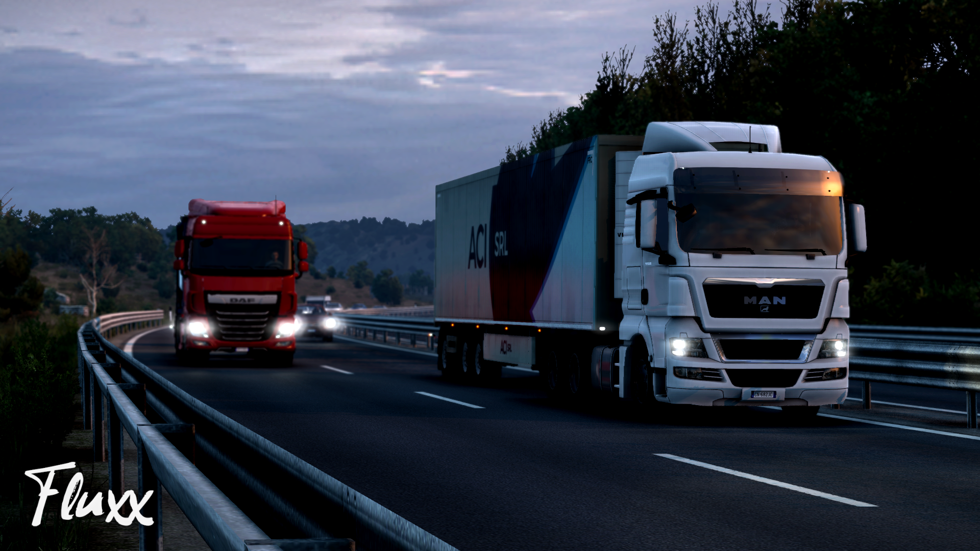 今天的 #EuroTruckSimulator2 一樣是開夜車
