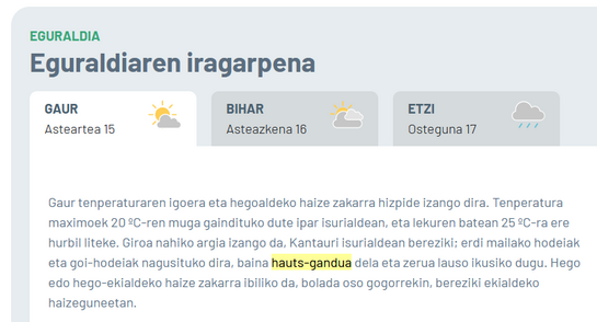 🍃 Gaur «hauts-gandua» izango dugu,