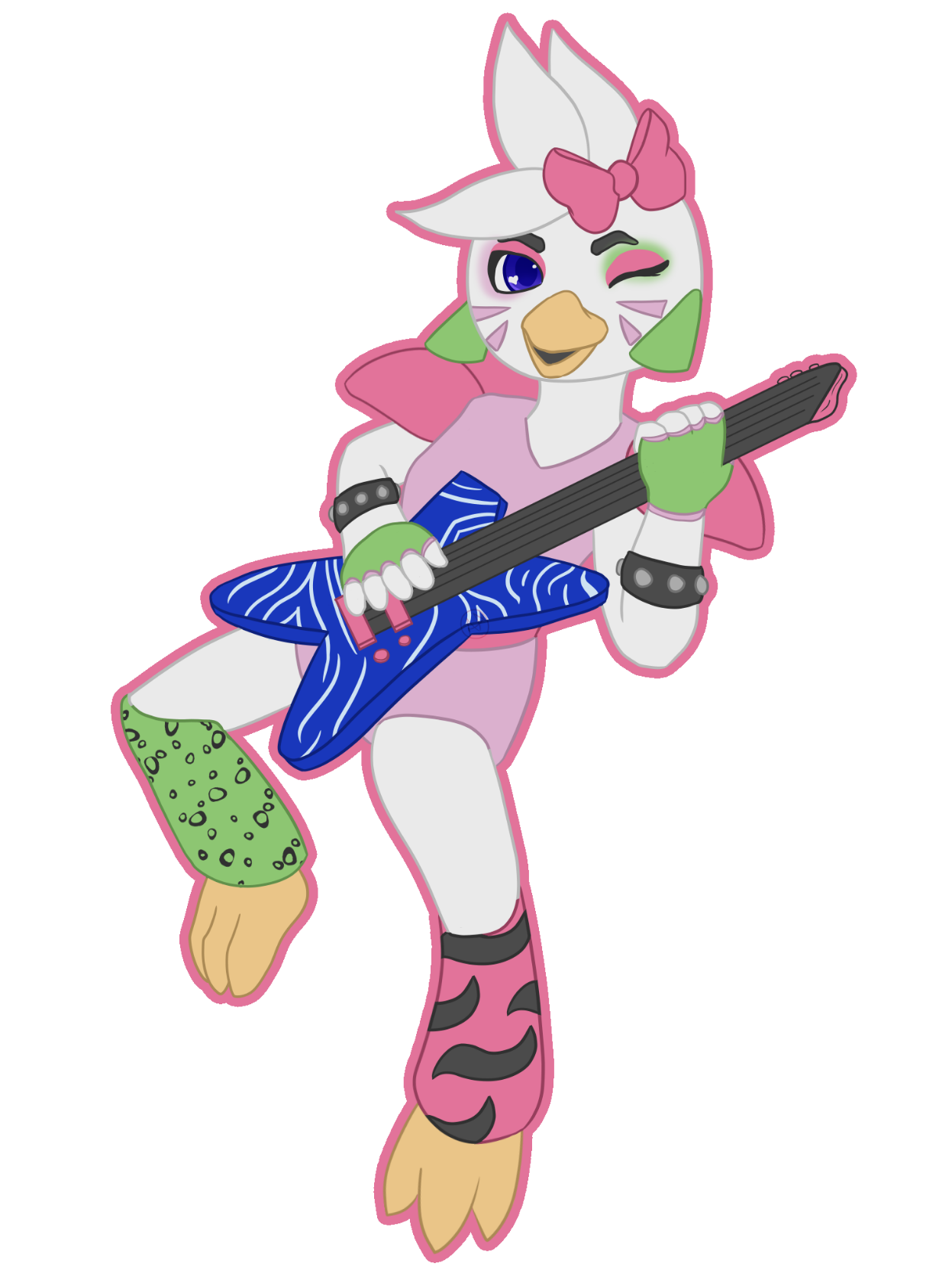 Last of the Glamrocks, it's Chica! I had to do her last because I didn't like her initial sketch and had to redo it. This chickadee is ready for a rockin' time.
