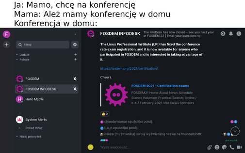 Lol, the @matrix team probably felt like they've aged 10 years working to make #FOSDEM2021 happen. Thank you for the fantastic effort! ππ