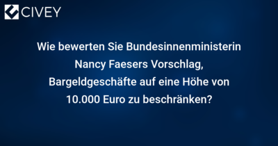 Wie bewerten Sie Bundesinnenministerin Nancy #Faesers Vorschlag, Bargeldgeschäfte auf eine Höhe von 10.000 Euro zu beschränken? #CiveyFrage https://civey.com/umfragen/27349/wie-bewerten-sie-bundesinnenministerin-nancy-faesers-vorschlag-bargeldgeschafte-auf-eine-hohe-von-10-000-euro-zu-beschranken