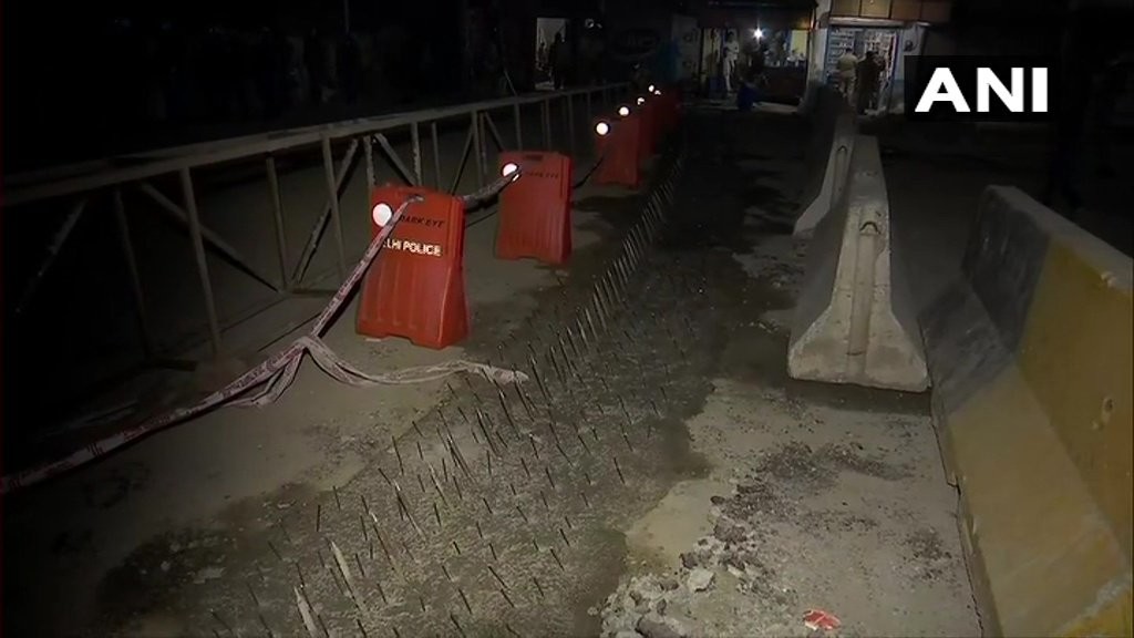 Delhi Police have fixed nails on the ground near barricades at Ghazipur border (ANI)