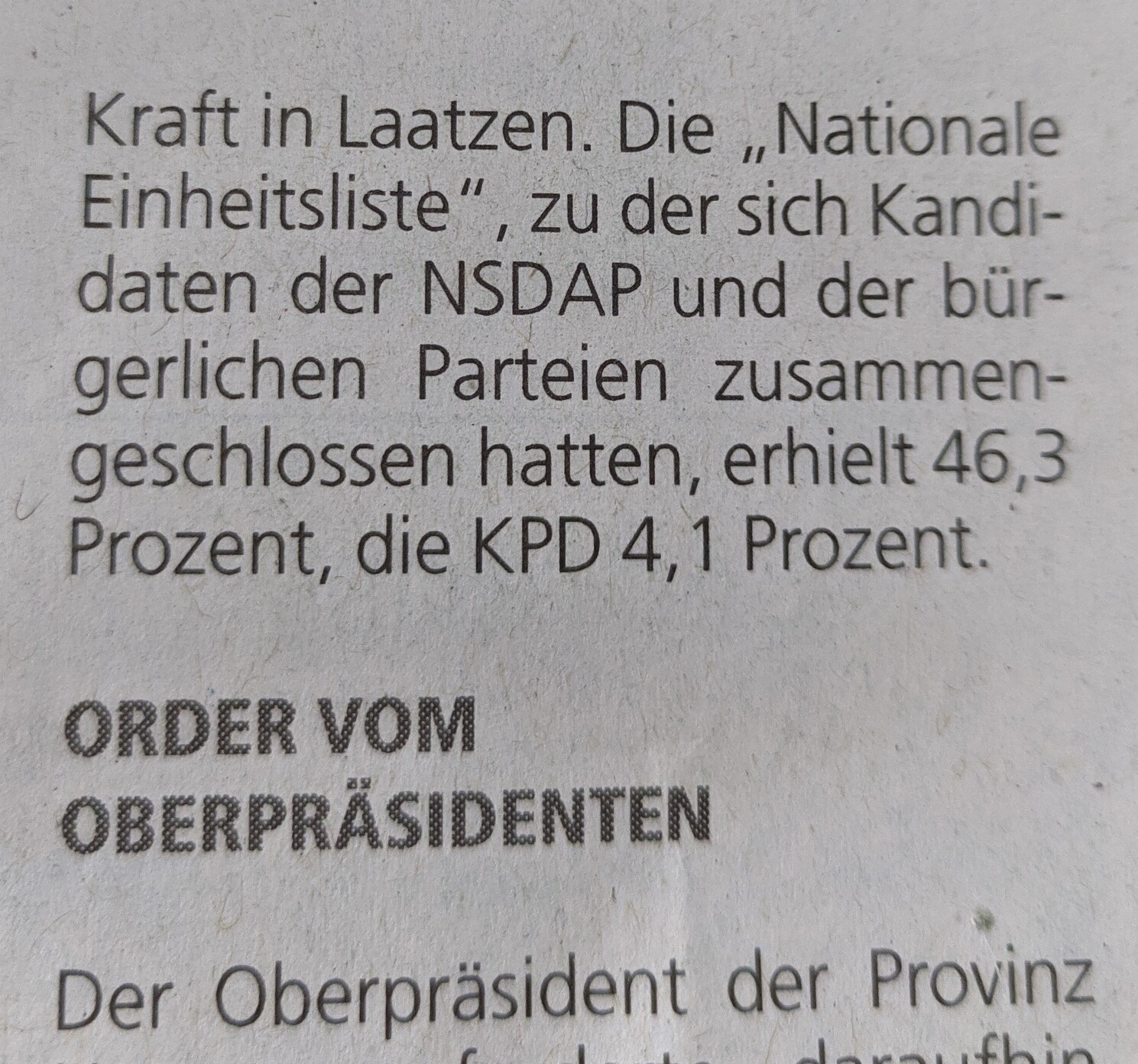 P.S.: Die SPD erreichte 49,5 Prozent bei der Gemeindewahl im März 1933 in Laatzen und verhinderte damit zunächst einen NSDAP-Bürgermeister. Durch eine Order des Oberpräsidenten der Provinz #Hannover wurde aber kommissarisch ein ehemaliger Polizeihauptmeister eingesetzt, ehe der NSDAP-Mann Neelmeier übernahm.