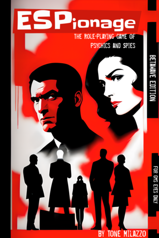 I'm using AI Art (Stable Diffusion) to generate placeholder art for the beta test edition of the ESPionage RPG. I have the computer a fairly vague prompt and wide open parameter to generate hundreds samples. 3% into the job and I have a strong candidate for the cover: