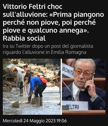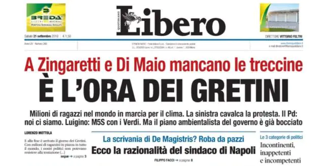 Purtroppo in Italia non è mai stata l'ora degli ambientalisti, ma è sempre l'ora dei fascistoidi come Vittorio #Feltri, che abusano verbalmente di minori pur di sostenere le loro tesi false e pericolose.