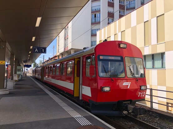 Bahnsteiggleicher Übergang zu den Chemins de Fer du Jura, am offenen Fenster mit R 249 bis Le Noirmont. #FensterAuf #PlaisirFrançais