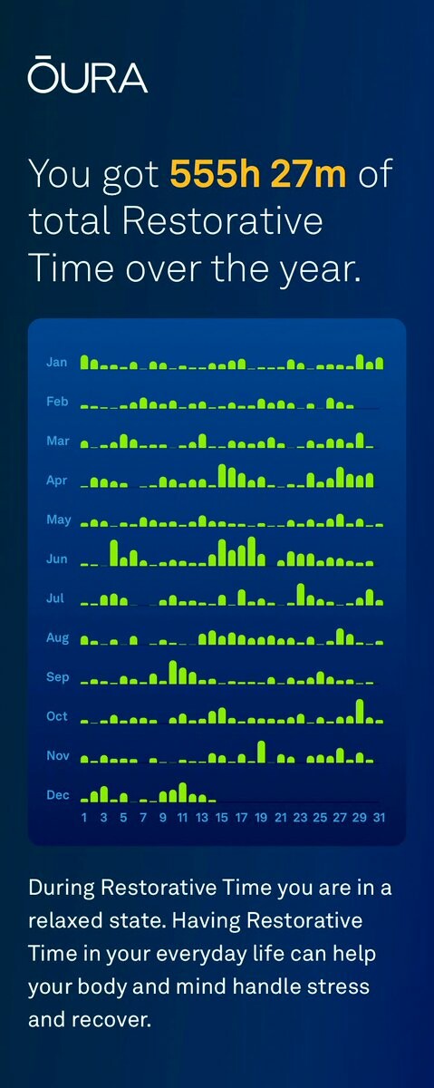 Burnout doesnโt come from acute stress. It comes from chronic stress without enough recovery. Love this visual of my last year tracking with @ouraring@twitter.com. #FightBurnout ๐ฅ