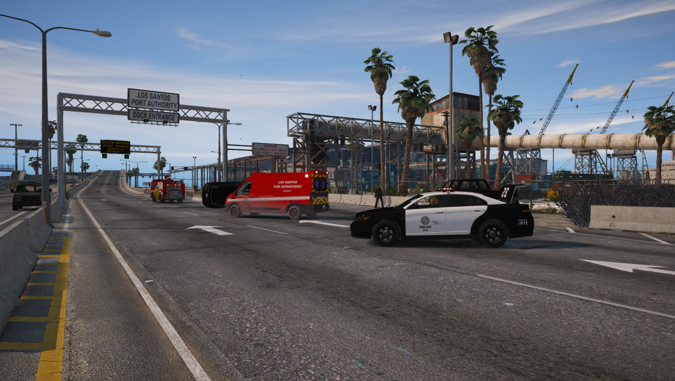 Nos encontramos actuando en la zona del puerto, Elysian Island en Autopia Parkway, debido a un accidente de tráfico en el cual se encuentran involucrados dos turismos.
