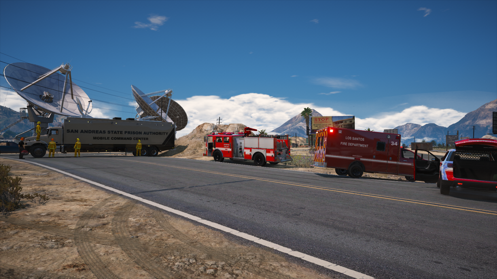 Nos encontramos actuando en Alta Street junto a @lspd, debido a un incendio en las inmediaciones de la estación de basureros de Los Santos.