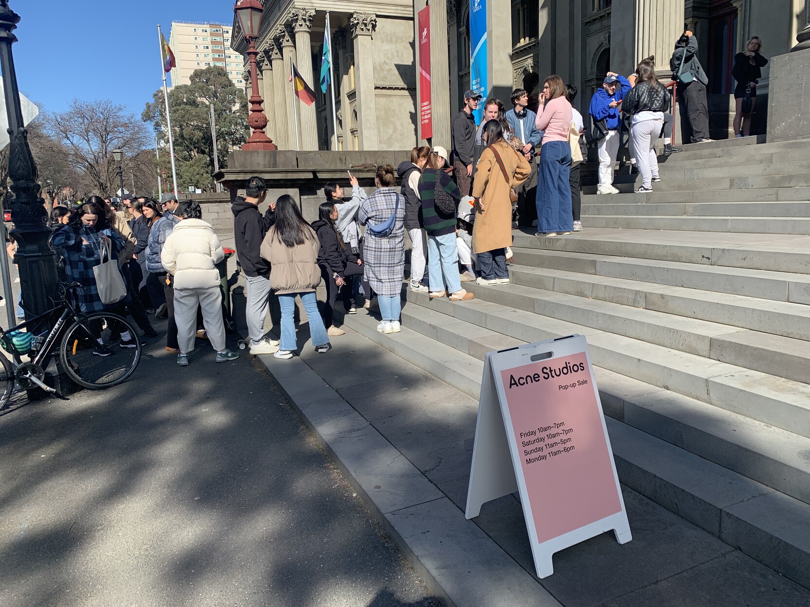 There's a queue wrapping all the way around the Fitzroy Town Hall and an adjacent street... for a pop-up clothing sale!