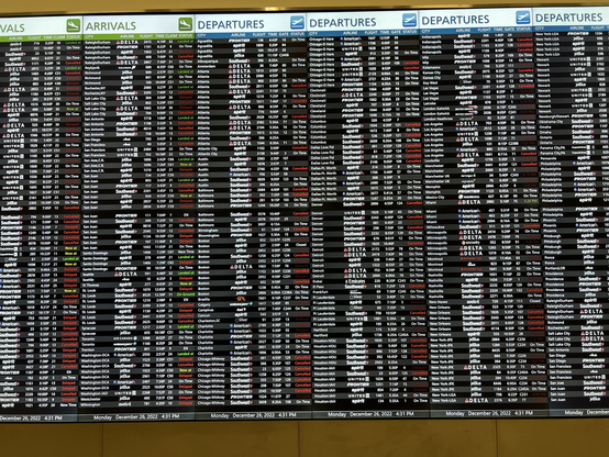 #mco #FlightTracking This is the flight tracking board at Orlando airport the day after #christmas . It’s a sea of red with many flight cancellations and delays. #airport fun :yikes: