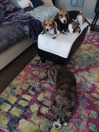 #FluffyFriday For anyone wondering, the two pups in my profile banner are Luna (laying on the toys) and Daphne (hamming it up for the camera). Not pictured is our 3rd, Sunny. Despite the similar look, he's no relation to Daphne and we suspect may have some basset mixed in.