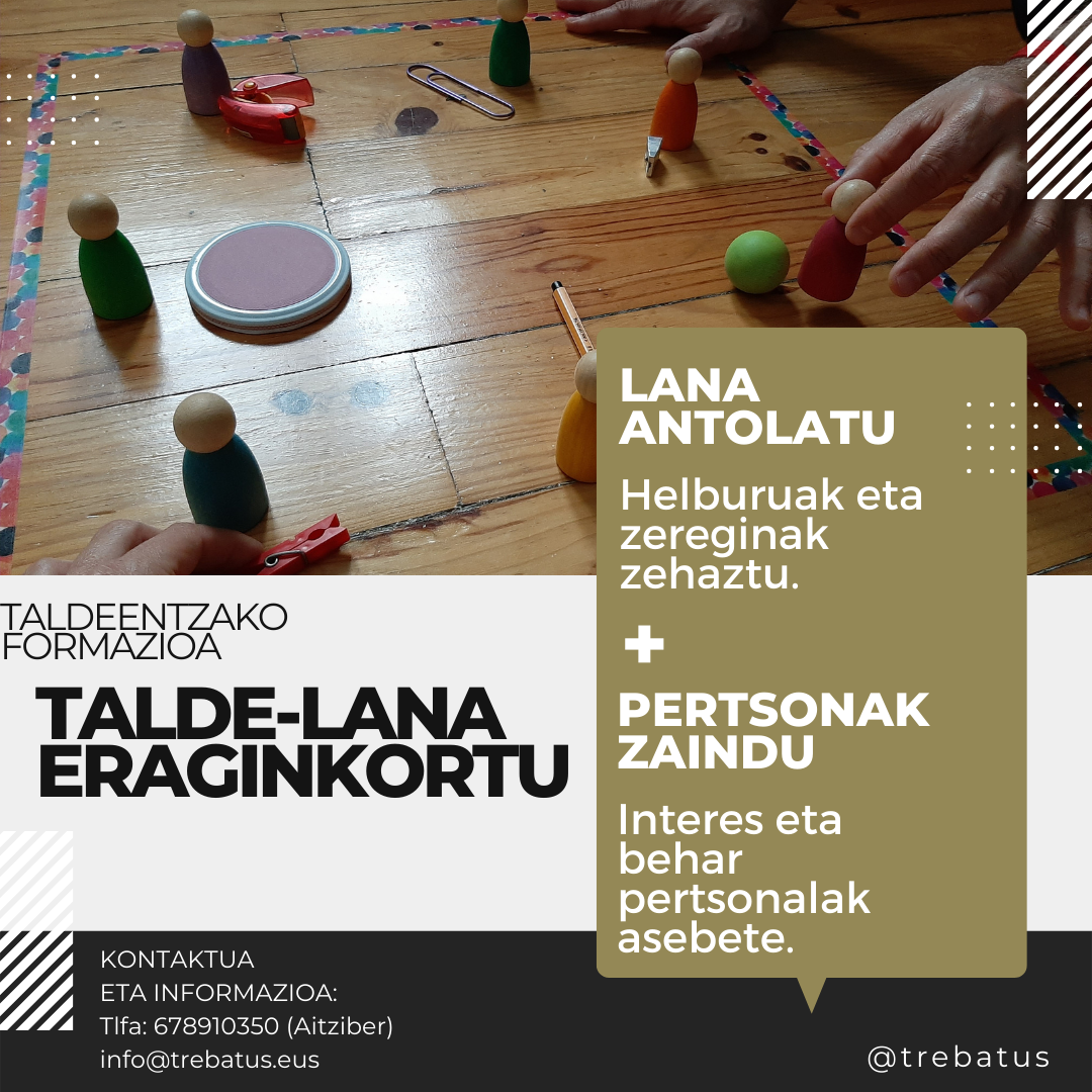 Taldekako ikastaroak eta bidelaguntza pertsonalizatuak.