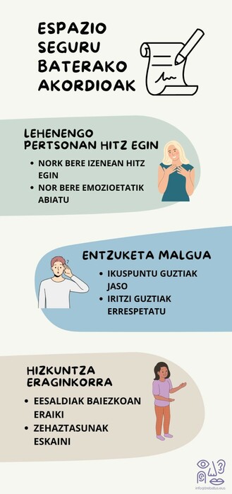 Espazio seguruak eraikitzeko partehartzaile guztien konpromisoa eta akordio zehatzak behar dira. #Komunikazio arauak adostea ezinbestekoa. #Formazioa #EspazioSegurua