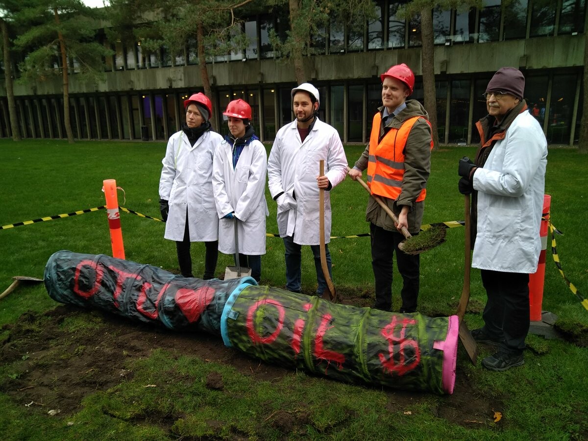 Today, @SciRebDenmark and #DTUdivest built a "pipeline" in the lawn of @DTUtweet, demanding it cut its billion-kroner ties with climate-wreckers like #TotalEnergies: one of the top 20 CO2 emitters on the planet. We demand #FossilFreeResearch in Danish academia. #greenwashing