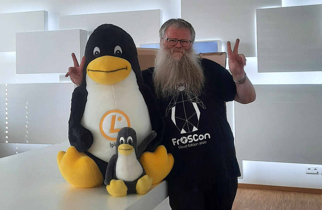 Der Riesen-Plüsch-Tux, den das Linux Professional Institute (LPI) für das Quiz auf der @froscon@twitter.com Cloud Edition 2020 zur Verfügung gestellt hatte, ist gut bei seinem Gewinner Harald Koenig in Reutlingen gelandet. Herzlichen Glückwunsch! @LPIConnect@twitter.com #FrOSCon15 #LPI