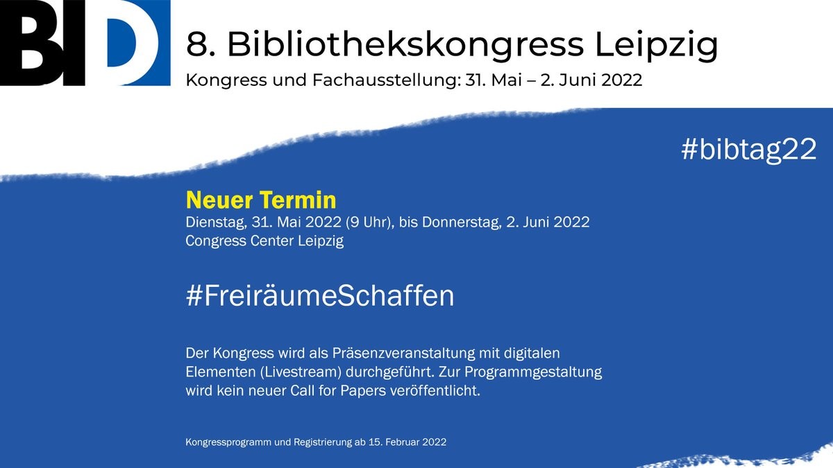 Das ist der neue Termin für den Bibliothekskongress im Congress Center Leipzig! Alle Infos auf https://www.bid-kongress-leipzig.de/ Wir freuen uns auf die persönliche Begegnung in Leipzig! #FreiräumeSchaffen