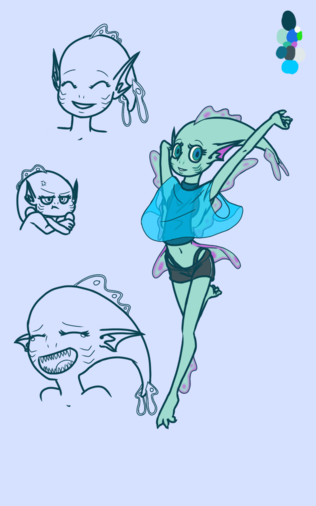 This is Azurine Bythi. She's a really bubbly and happy fish lady called a Hydroped and one of her favorite things to wear is really flow-y lace. Another is the color purple.
