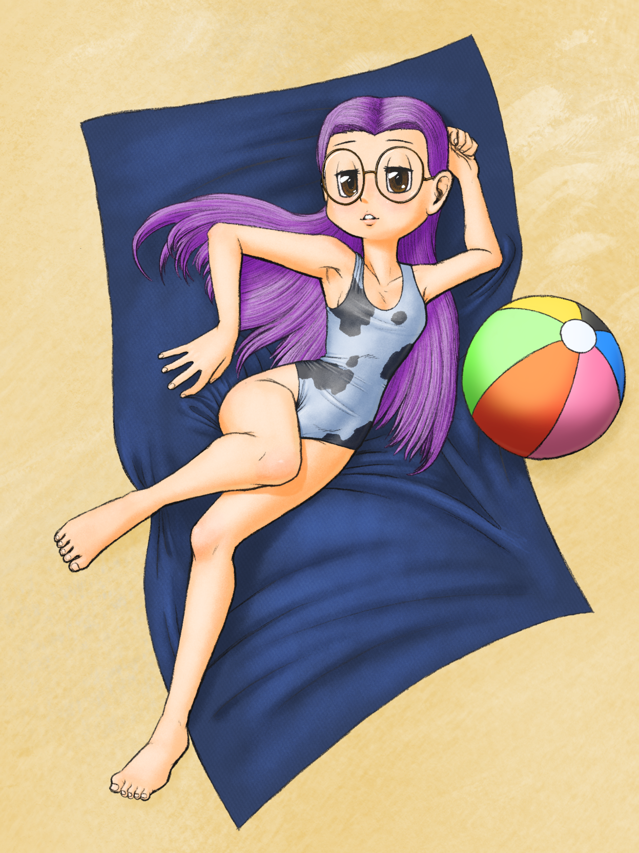 Behold, a beach pinup of Yolei Inoue from Digimon Adventure 02, in her cute, for-some-reason-cow-patterned swimsuit from Digimon: The Movie. You guys get the alternate version so Twitter doesn't ban me for drawing a fictional character lol
