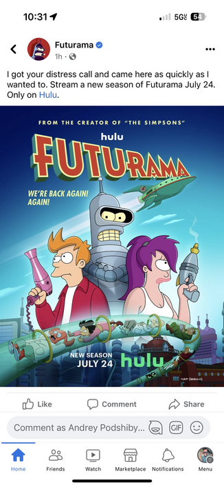 Apparently I had missed the news - #Futurama is coming back! In 4 days!?!? https://www.theverge.com/2023/5/18/23728257/futurama-hulu-premiere-date-july-24