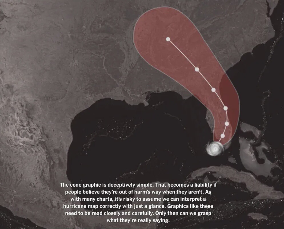 “The cone graphic is deceptively simple. That becomes a liability if people believe they're out of harm's way when they aren't.”