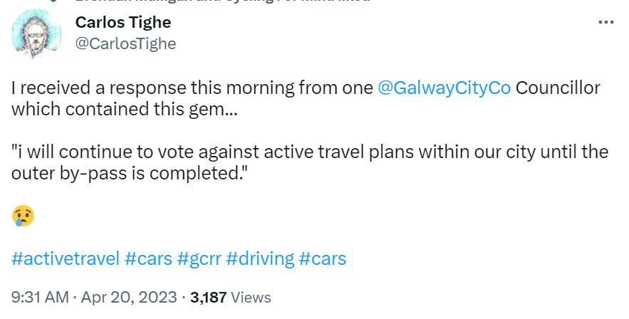 Their local FG TD is one of the loudest proponents of the Galway City Ring Road. #GCRR #PublicTransport #SustainableTransport