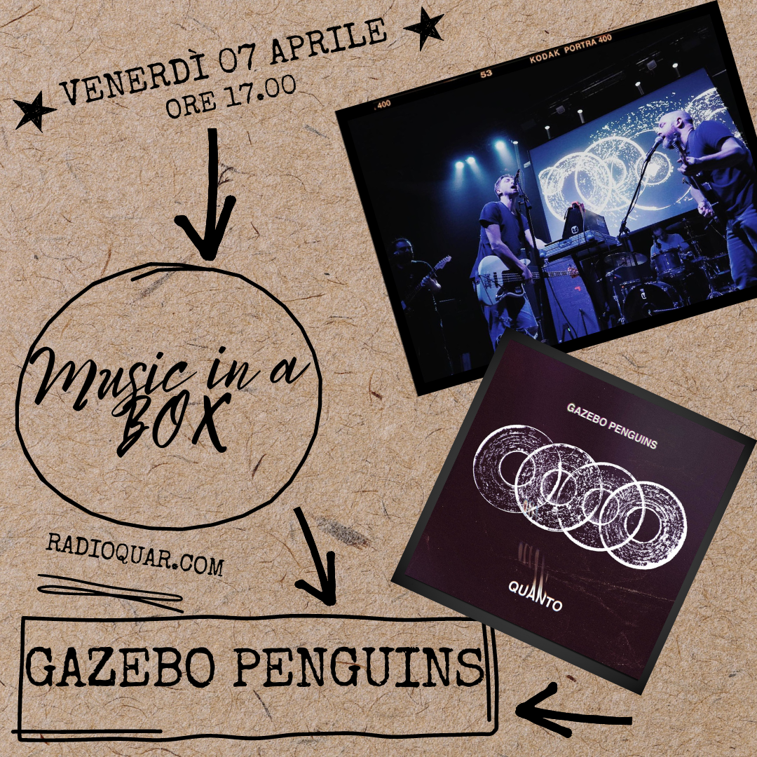 Oggi pomeriggio alle 17.00 per "Music in a box", ascolteremo l'intervista a Gabriele Capra Malavasi dei @gazebopenguins, che presenta "QUANTO", l'ultimo disco della band, pubblicato lo scorso dicembre da @garrincha.dischi e @toloselatrack.