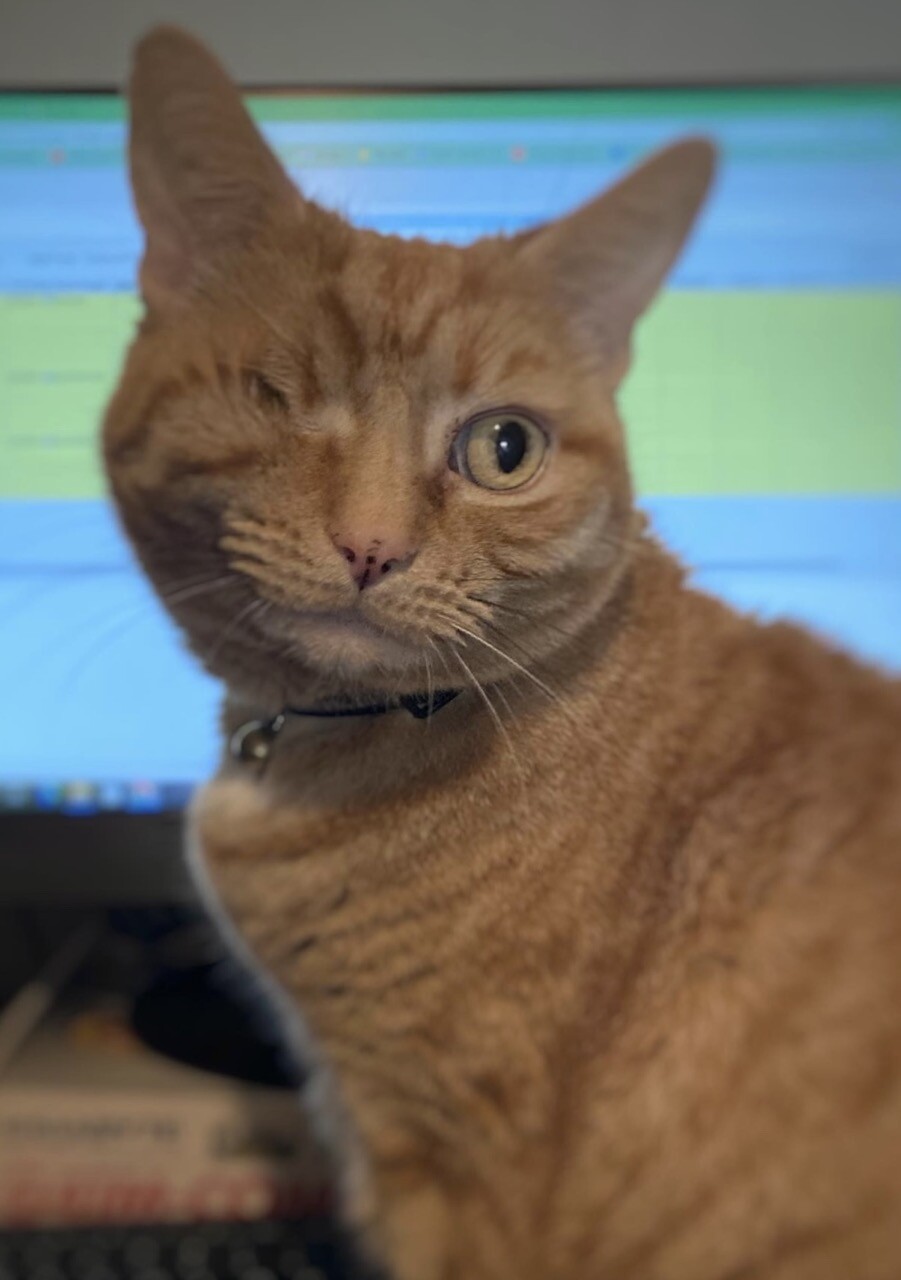 Introducing our one-eyed wonder, Gina (Orangina), aka Gigi / Gee / Gina Bambina / Heebie Geebie / Needy Macreadie / the Furry Menace.