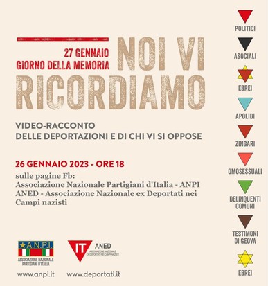 In occasione del #GiornodellaMemoria, ANPI e ANED nazionali hanno realizzato un videoracconto che verrà reso pubblico il 26 gennaio alle 18 sulle pagine Fb Associazione Nazionale Partigiani d'Italia - ANPI e ANED - Associazione Nazionale ex Deportati nei Campi nazisti.Non mancate