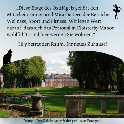 Tänzerin Lilly Taylor beginnt mit 38 ein neues Leben als Aqua-Trainerin im Cloisterby Manor. Sie schließt Freundschaften – auch mit Kater Darcy. Nur gegen den Modefotografen Drystan Fox hegt sie zu seiner Verwunderung eine heftige Abneigung.