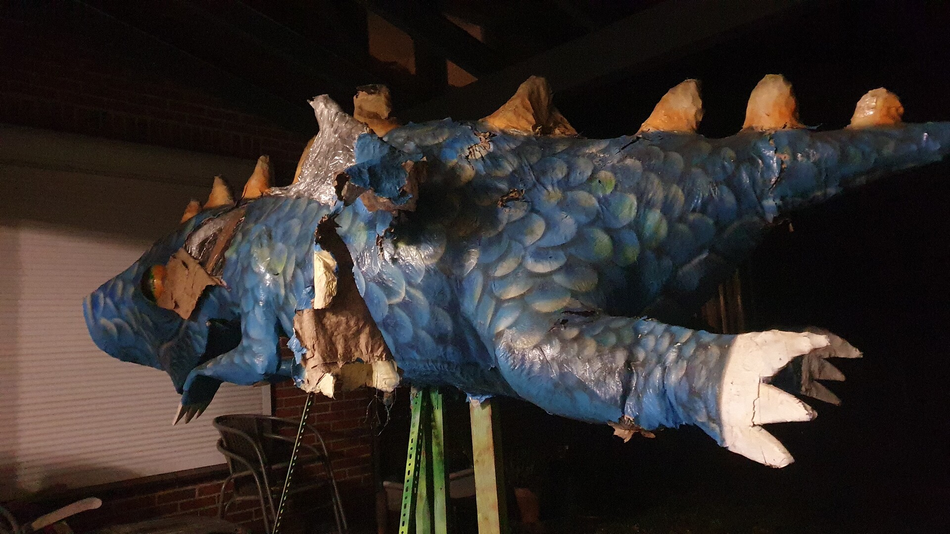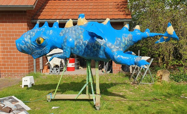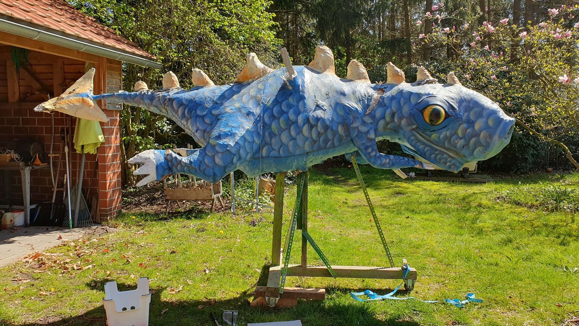 #Gordonbleu ist schon mal blau lackiert.wenn er getrocket ist, kommen Sprühlack-Schuppen und Bootslack zum Schluss.