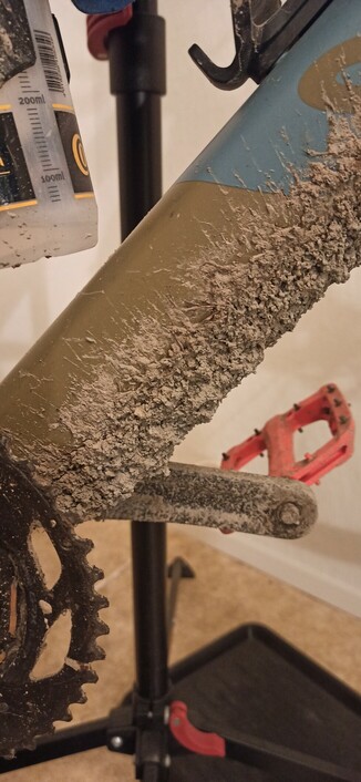 So the gravel roads have been wet the last few rides. After the last on I got home with all that extra weight. Perhaps a sign it is drying up?