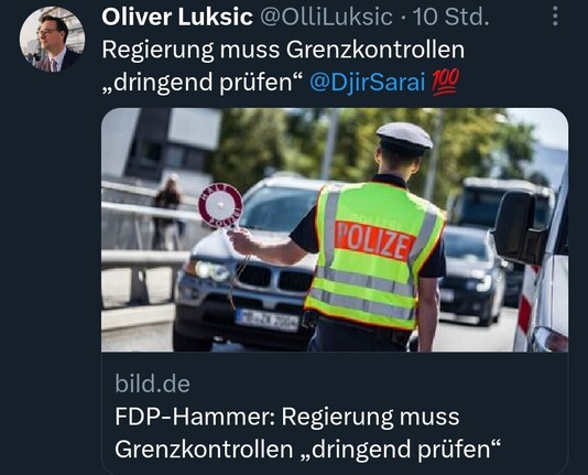 „Es ist schmerzhaft, dass wir angesichts des großen Zustroms an illegaler #Migration nach Deutschland wieder über #Grenzkontrollen nachdenken müssen. Ich war immer für offene Binnengrenzen, aber sie müssen einhergehen mit einem wirksamen Schutz der #EU-Außengrenzen.“ (tm) #WT23