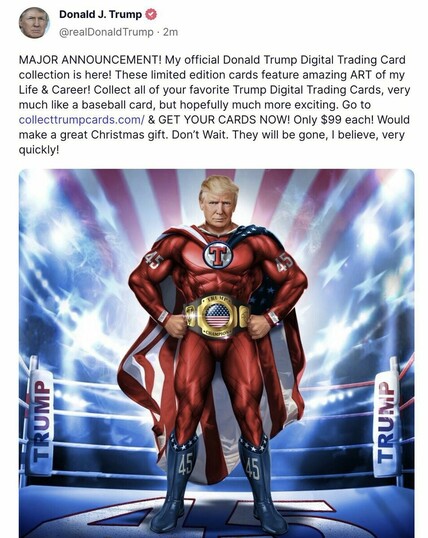 https://www.rollingstone.com/politics/politics-news/trump-announces-nft-trading-card-collection-1234648014/ Nothing but a geriatric grifter trying scrape every last penny he can from a bunch of idiots. #GriftersGonnaGrift