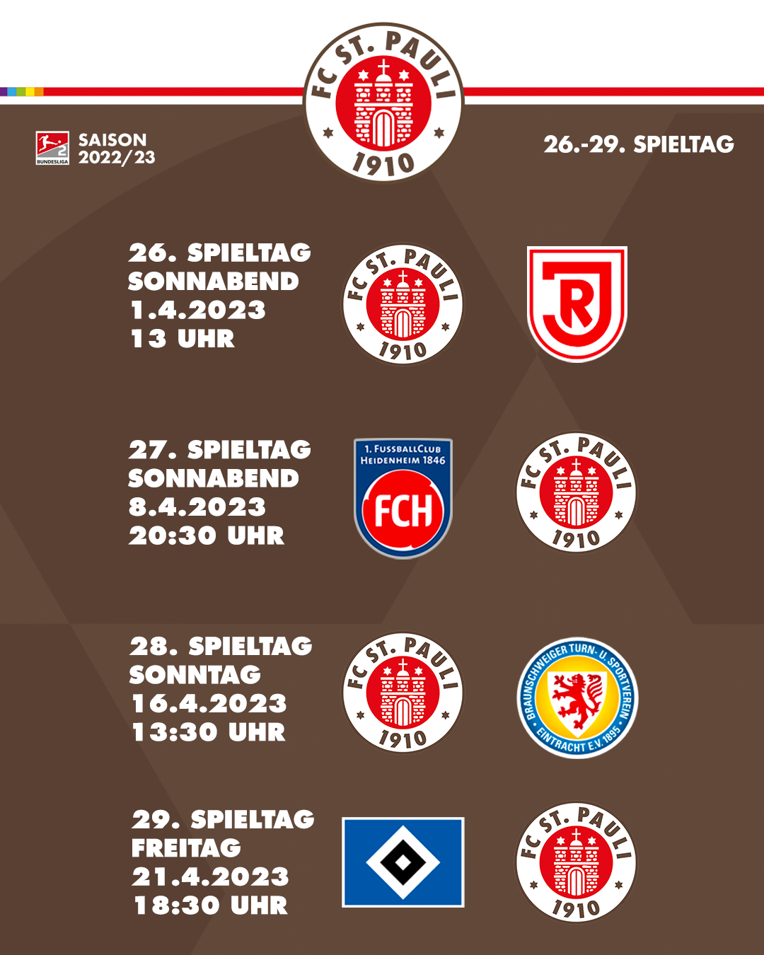 ℹ️ Das Derby gegen den HSV gibts live im Internet. Sky Sport überträgt die Partie am Freitag (21.4., 18:30 Uhr) in einer gesonderten Übertragung kostenfrei auf YouTube. 📺