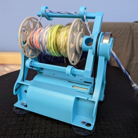Given how small the nano is I don't really expect to use it for plying yarn much when I've got the big wheel right there, but I wanted to try it out, so this is a chain ply of my very first fibers spun on the blue beastie. Probably a bit overspun but it was fun!