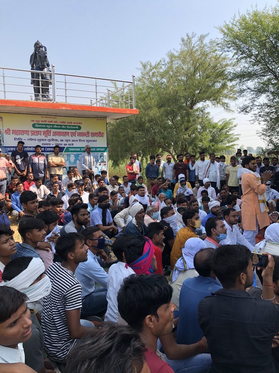 #UP : #Protest held by upper caste community in the #village to support the accused in the alleged murder and rape of 19 yr old Dalit girl. Demand fair inquiry in the case. Hang them if guilty, they say. Accuse political parties of indulging in petty politics.#HathrasHorror