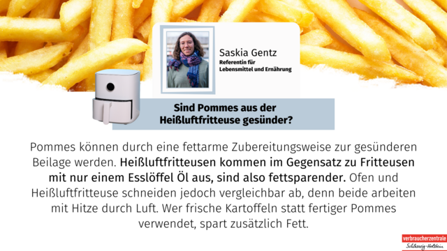 #Wissen to go: Sind #Pommes aus der #Heißluftfritteuse gesünder? "Jedenfalls gesünder als aus der Fritteuse", sagt Ökotrophologin Saskia Gentz. Eine gesunde Ernährung definiert sich über Abwechslung und Ausgewogenheit. Eine gelegentliche Portion Pommes ist aber okay.
