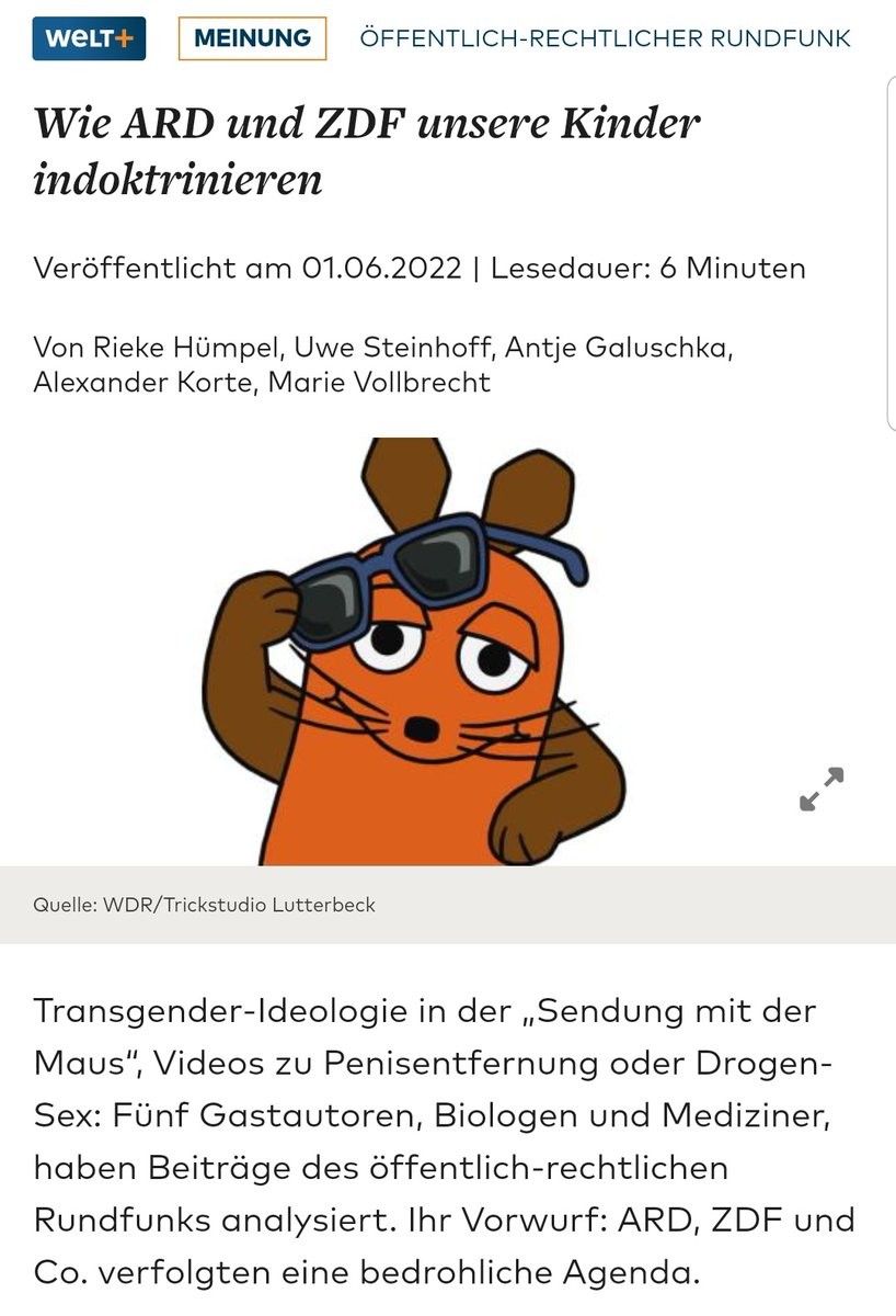 – kulturkampf-affine Zeitung #DieWelt featured sie in einem Artikel, der Trans-Information als "Frühsexualisierung" verkauft 1/
