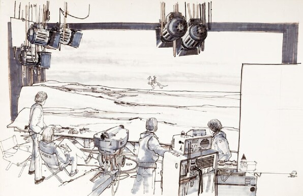 Dennis Muren, Phil Tippett and Mike Pangrazio on the same Hoth miniature set.