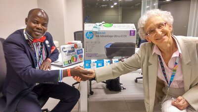 CSISAC SC Claire Milne hands over to Nigerian NGO AgeCare a printer given by #ITAC @OECDinnovation #OECDdigitalMX pic.twitter.com/k7XAmaBfoS https://twitter.com/CSISAC/status/746111128800006144