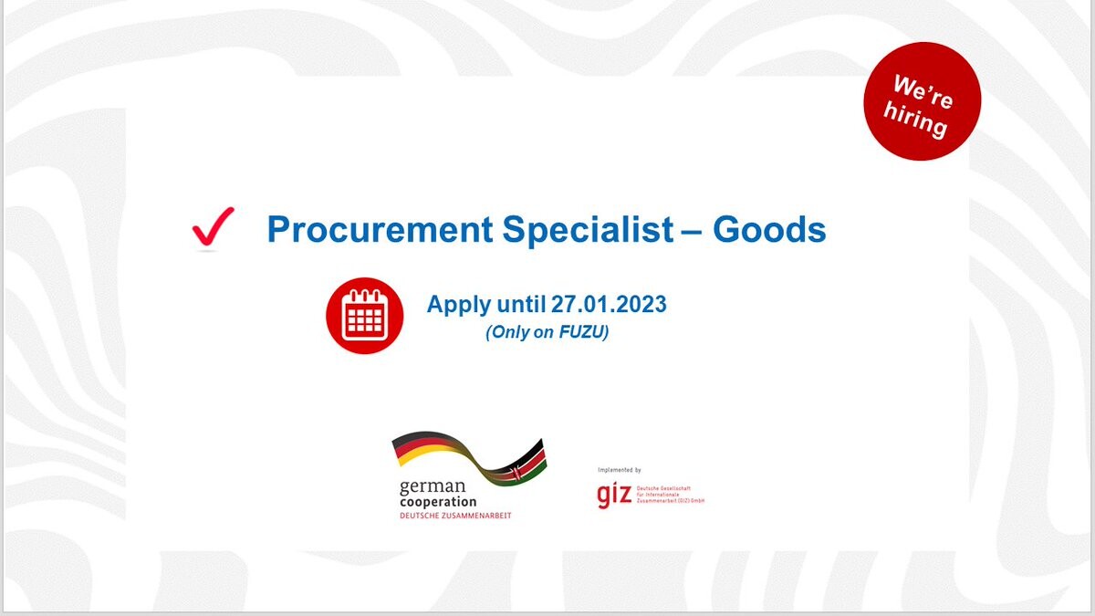Apply TODAY - https://www.fuzu.com/kenya/jobs/procurement-specialist-goods-giz