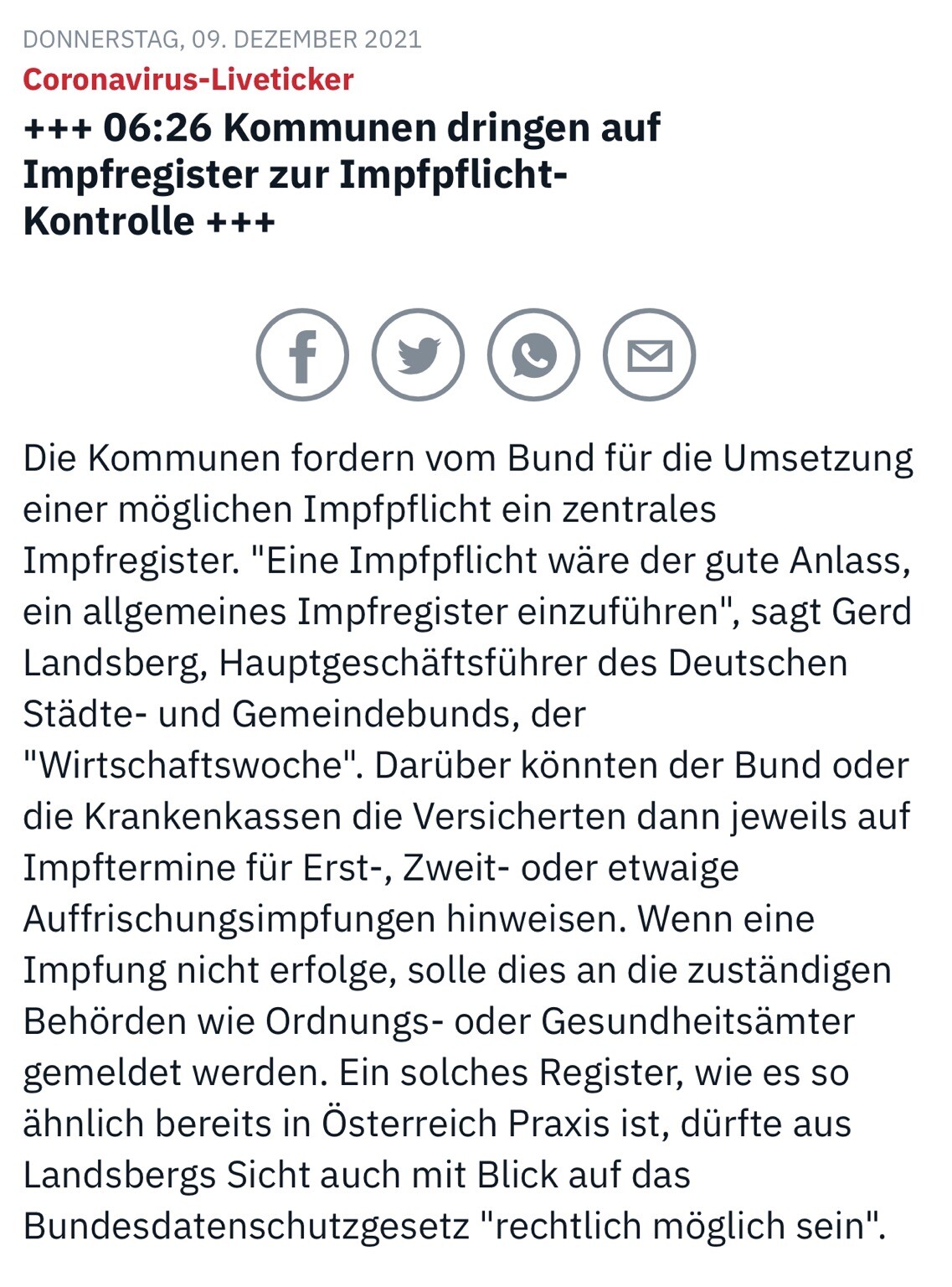 ein allgemeines Impfregister einzuführen", sagt Gerd Landsberg, Hauptgeschäftsführer des Deutschen Städte- und Gemeindebunds. #corona #impfpflicht #impfregister