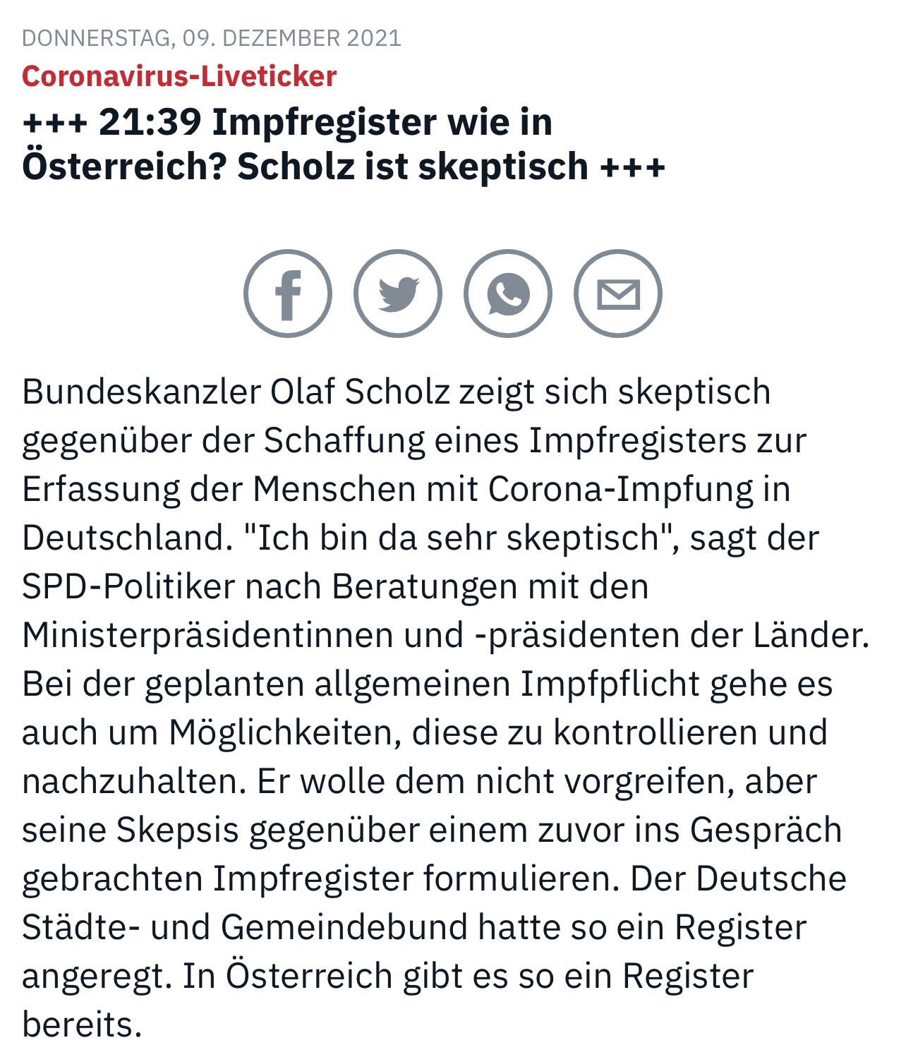 Also, keine #Impfpflicht. Aber vermutlich werden sie alles tun, um die besonders schützenswerte Gesundheitsdaten aller Deutschen an ihre Lobby-Partner zu verschenken. Diesmal über ein #Impfregister und diesmal ohne Spahn, der danach dummdreist damit prahlt, den Datenschutz gebrochen zu haben. 🤷🏼♂️