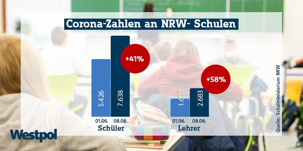 Die Corona-Sommerwelle rollt - auch an den Schulen. In nur einer Woche gab es einen Anstieg von 41 % bei Schülern und 58 % bei Lehrern.